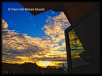 Keseluruhan foto di atas dirakam dalam masa lebih kurang tujuh minit. Setiap satunya menggunakan 'focal length' yang berbeza-beza. Foto besar di bahagian tengah yang dirakam menggunakan 'focal length' 14mm (14-42mm) menunjukkan keadaan keseluruhan pemandangan matahari terbit dari sebuah jendela. Manakala foto-foto kecil telah dirakam dari tingkap yang sama menggunakan lensa-lensa berikut :